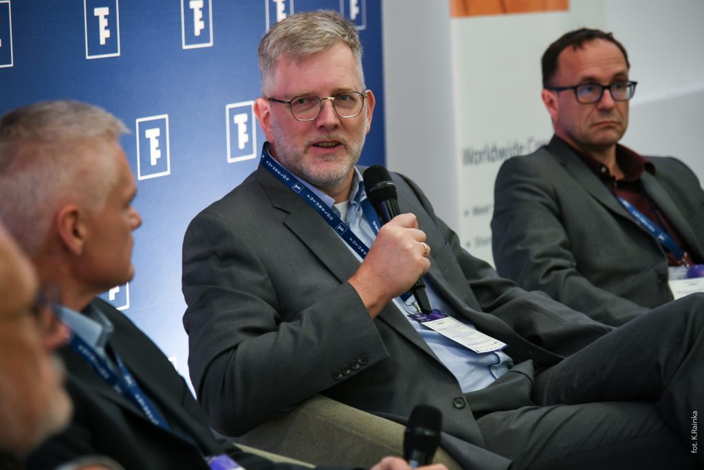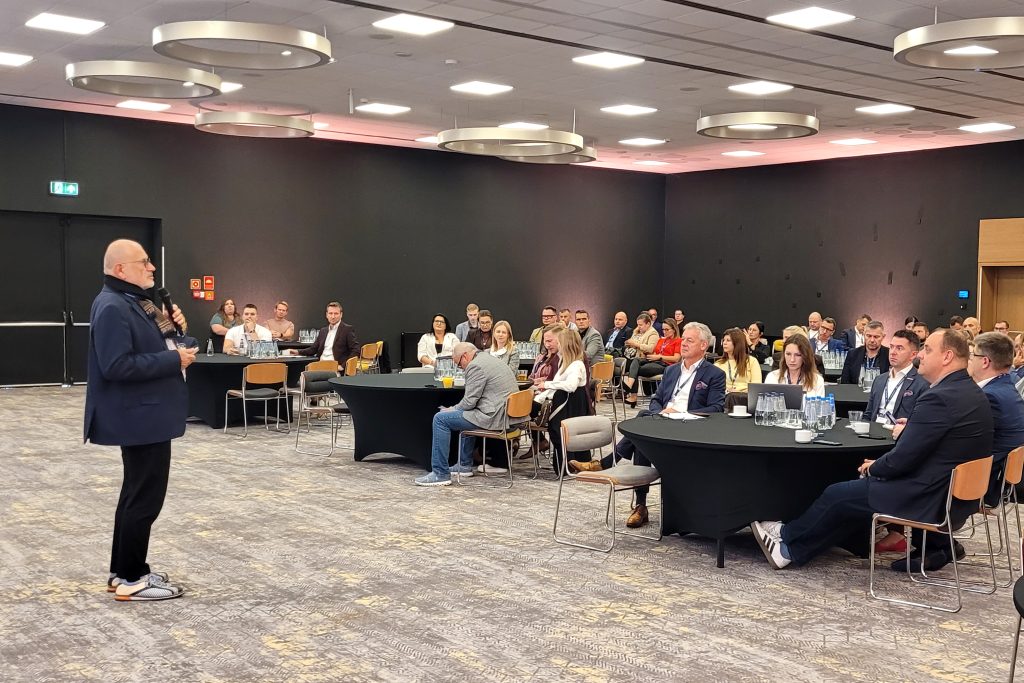 Prelegent zaprezentował kilka przykładów firm, które zaczynają działać według tego modelu. Przypomniał też, że dodatkowym impulsem do takiej zmiany są doświadczenia z ostatnich lat – chociażby wybuch wojny na Ukrainie pokazał, jak ważny jest aktualnie nacisk na rezyliencję łańcuchów dostaw. Na koniec zaapelował o tworzenie regionalnych ogniw produkcyjnych, a następnie hybrydowych sieci z centrami doskonałości w poszczególnych regionach.