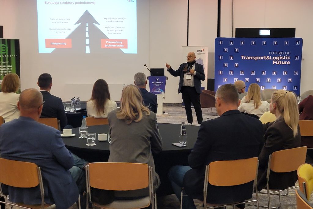 Prelegent przedstawił etapy rozwoju transportu drogowego w Polsce od momentu rozpoczęcia transformacji ustrojowej. Zdaniem profesora, rok 2025 r. jest okresem przełomu, a już za kilka miesięcy w europejskich łańcuchach logistycznych może wystąpić załamanie podaży usług przewozów drogowych rzeczy. A szybciej niż brak kierowców uwidoczni się brak ich opiekunów. Dziś prywatny przewoźnik koncentruje się na kształtowaniu nieformalnych relacji z kolegami, którzy są kierowcami. Relacje nieformalne zapewniają kontrolę nad biznesem, jeśli jego rozmiar pozostaje na poziomie „mały lub mikro”. Prywatny przewoźnik w swojej autoocenie nie należy do „białych kołnierzyków”, co powoduje, że nie jest zmotywowany do doskonalenia kompetencji, aby mieć duże kompetencje marketingowe i super kompetencje cyfrowe.